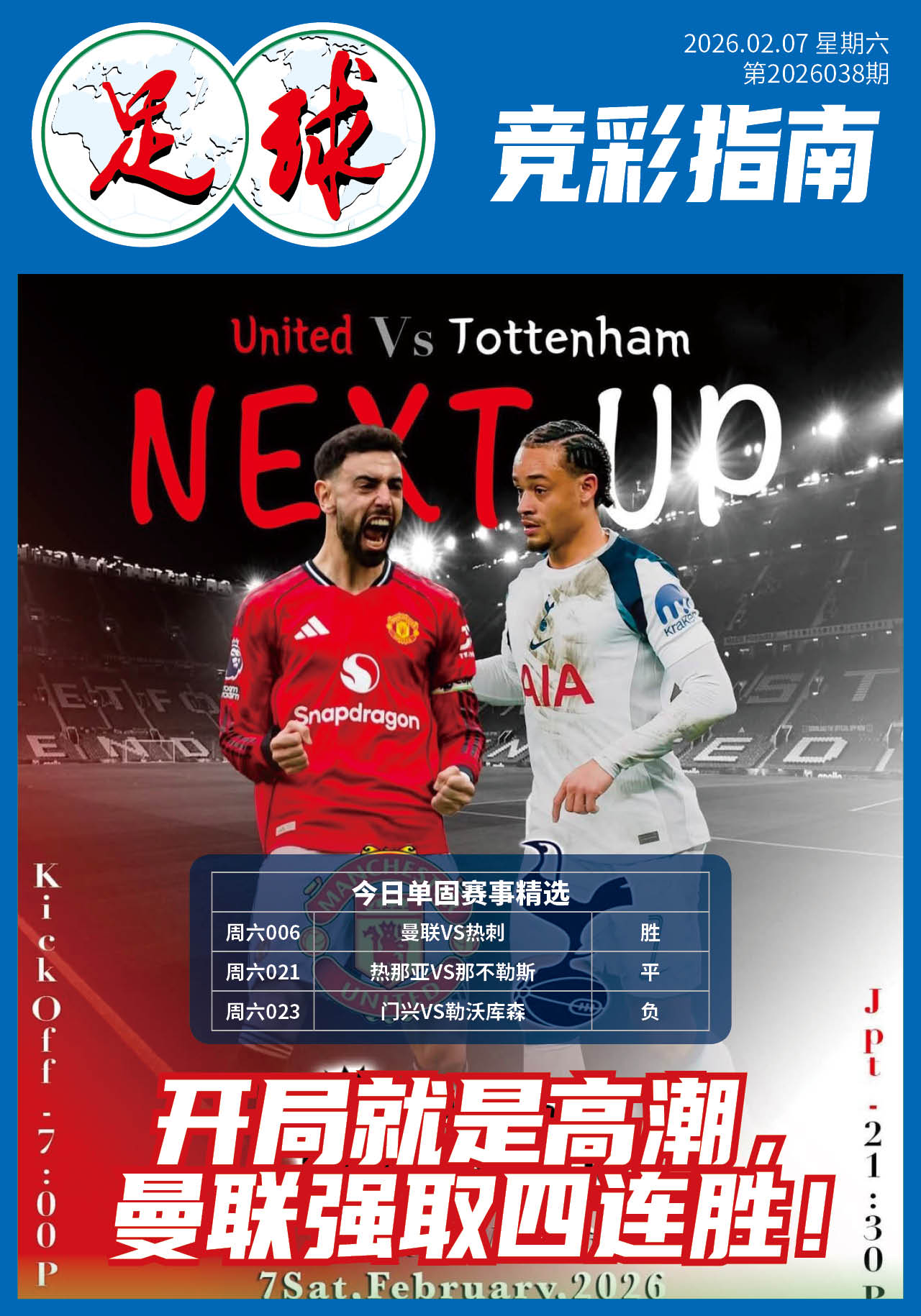 马年春节即将到来,按照工作安排,今天也将是个人节前最后一次在公众号上跟大家见面了,在这也提前祝所有读者朋友们节日愉快,新的一年马到成功。今天周五,英超没有早场,因为这个周末要给第4轮足总杯让步,其实今...