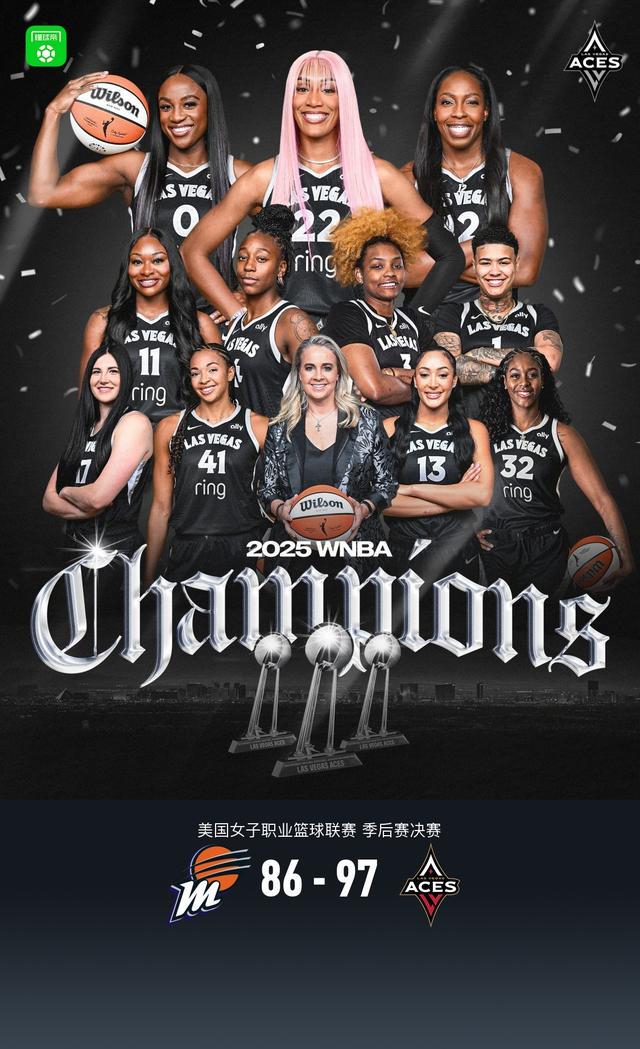 北京时间10月11日,美国女子职业篮球联赛总决赛,菲尼克斯水星对阵拉斯维加斯王牌。半场水星38-54王牌,最终王牌97-86水星,大比分4-0横扫取得本赛季总冠军!