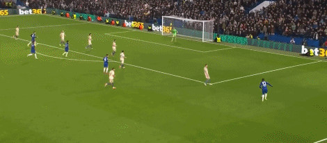第45分钟,韦格霍斯特送点,恩佐主罚命中,切尔西3-1