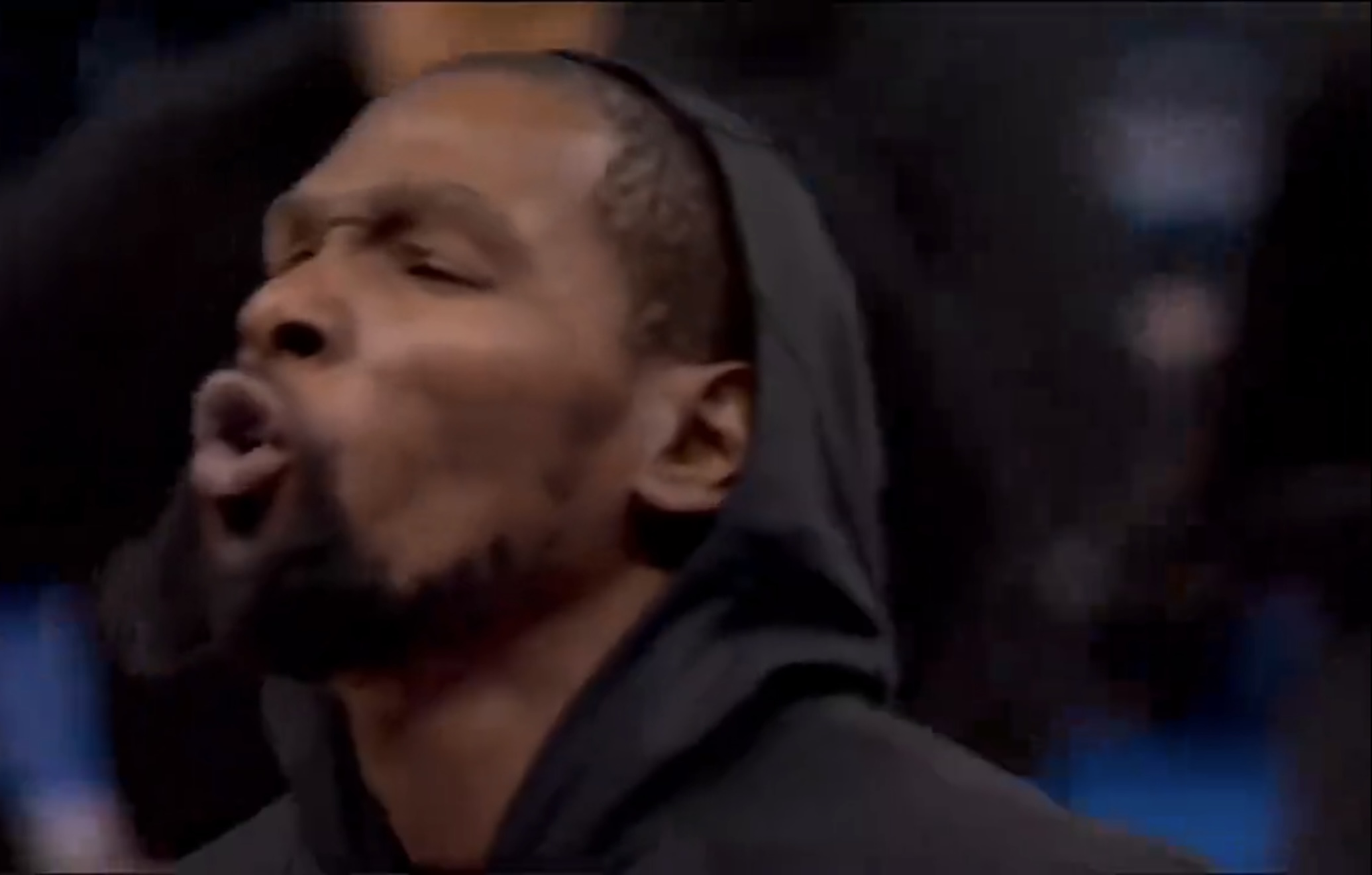 有趣的是,今天首秀的对手是自己出道时的老东家俄克拉荷马雷霆队,在对方的主场,雷霆球迷向杜兰特发出嘘声,以示嘲讽,我们的阿杜却不甘示弱,也对着观众发出嘘声,表示反击。有仇当场就报,的确是他,也难怪他线上重拳出击,线下也绝不服软。