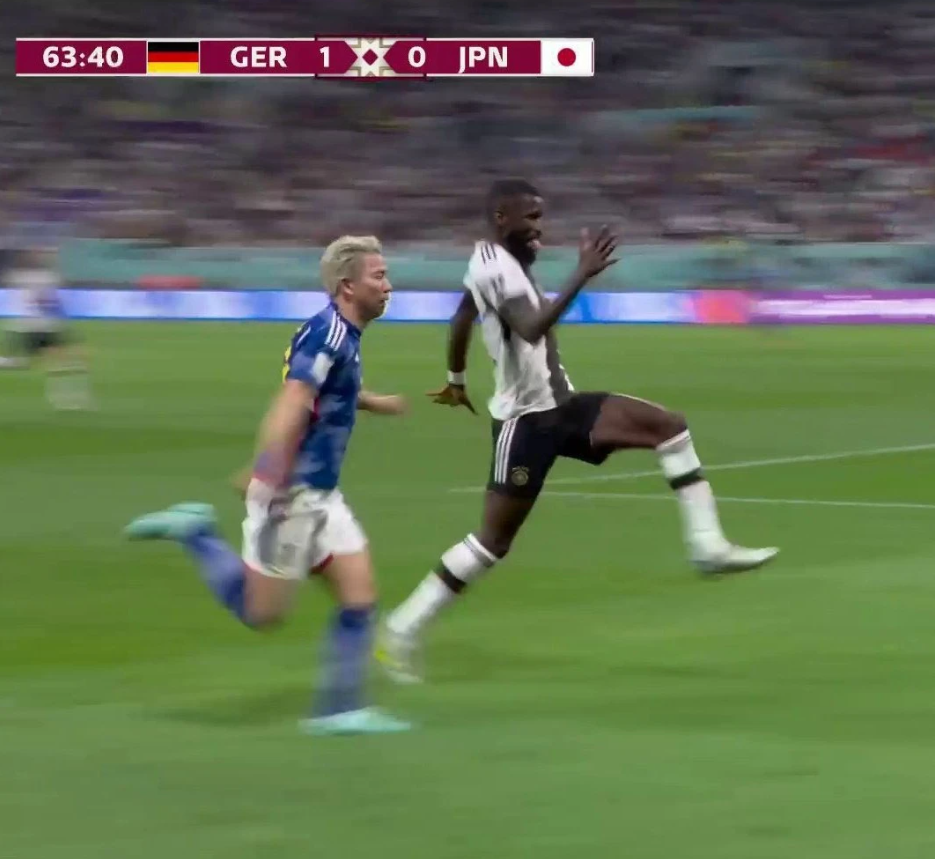 2021年欧冠决赛,吕迪格在一次对抗中直接“K.O”了曼城中场德布劳内,后者含着眼泪受伤离场;2020欧洲杯小组赛,波巴的身体上留下了德国中卫的牙印;3年前一场欧国联比赛,法国后卫帕瓦尔从皇马铁卫那里领教了“脖子高度的铲球”的意义。而当年刚代表斯图加特踢德甲时,这家伙就一拳打到比他大10岁的荷兰人范德法特的胸口。