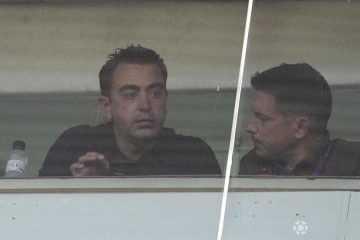 西甲第2轮,巴萨主场对阵加的斯,被停赛的巴萨主帅哈维在包厢里远程指挥球队。