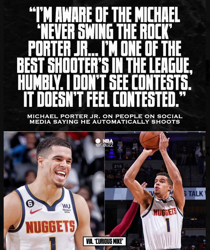 掘金前锋迈克尔-波特谈到为何自己很少传球。