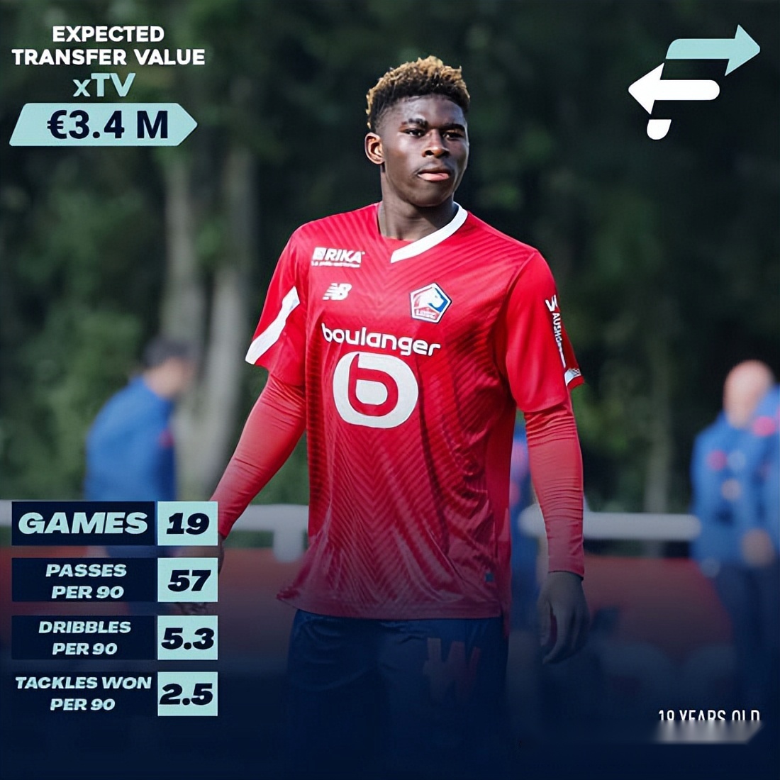 巴莱巴毕业于Brasseries足球学校,这是非洲最著名的足球学院之一。在2022年1月转会至里尔,最初是他们B队的一员后,他的非凡天赋很快就显现出来了。在抵达欧洲不到一年后,巴莱巴迅速进入一线队,并在2022-23赛季在主教练保罗-丰塞卡的带领下开始获得常规上场时间。他在球场上的影响力如此之大,尽管他只打了500多分钟的一线队比赛,但他已经让欧洲的精英俱乐部围着他转了。巴莱巴目前的预期转会价值(xTV)仅为340万欧元。这对于一个在欧洲五大联赛中相对缺乏经验的球员来说是再正常不过的了。据报道,里尔正在寻找超过3000万欧元的价格来与他们的年轻球星分道扬镳。这是对年轻人才的竞争,俱乐部可以坚定地知道,如果球队现在不做出决定,他们很可能在一年后不得不付出更多的代价。