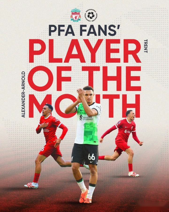官方:阿诺德当选PFA球迷票选英超12月最佳球员 2024.01.16 官方消息,利物浦后卫阿诺德当选PFA(英格兰职业球员工会)英超12月最佳球员。 在线客服 快速购买 关注 公众号 足球大赢家 关注我们 4008800246 咨询电话 返回顶部