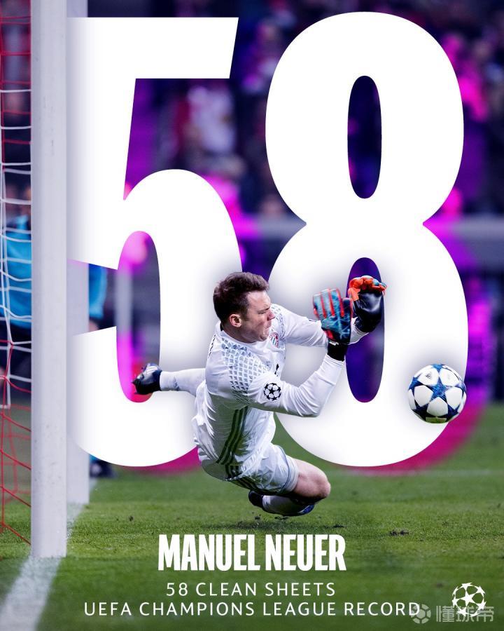 58次超越卡西,诺伊尔成欧冠历史零封次数最多的门将 2024.04.18 欧冠1/4决赛次回合,拜仁主场1-0击败阿森纳,晋级四强,诺伊尔收获欧冠生涯第58次零封,超越卡西利亚斯,成为欧冠历史上零封次数最多的门将。 此役对阵阿森纳,首发出战的诺伊尔奉献3次扑救,帮助拜仁1-0零封对手。 至此,这位38岁的德国门将欧冠生涯138次出场已收获了58次零封。 这使得诺伊尔超越前皇马门将卡西利亚斯(177场57次零封),成为欧冠历史上零封次数最多的门将,刷新了欧冠历史纪录。