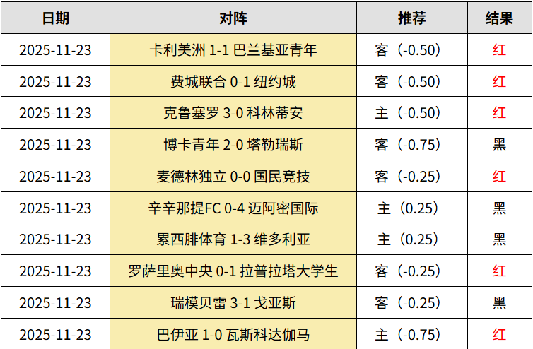 单日会员10中6!巴西甲3中2,巴伊亚1:0轻取瓦斯科达伽马;累西腓体育1:3输维多利亚,受让不中;克鲁塞罗3:0完胜科林蒂安。巴西乙瑞模贝雷3:1反杀戈伊亚斯,反超对手拿到升级资格。阿甲2中1,罗萨里奥中央0:1被拉普拉塔大学生淘汰;博卡青年2:0塔勒瑞斯晋级。美职2中1,辛辛那提0:4完败迈阿密国际,受让不中;费城联合 0:1纽约城,受让很稳。哥伦甲2场全红,麦德林独立0:0国民竞技,卡利美洲1:1巴兰基亚青年,两场受让稳稳收米!