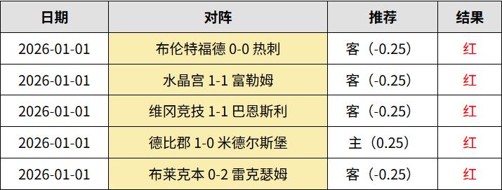 昨天会员5中5!英冠两场全红,近8中7,布莱克本0:2完败雷克瑟姆,升班马受让很稳;德比郡1:0爆冷米德尔斯堡,抓到冷门。英甲维冈竞技1:1巴恩斯利,命中比分!英超两场全红,水晶宫1:1富勒姆,布伦特福德0:0热刺,受让稳稳收米。