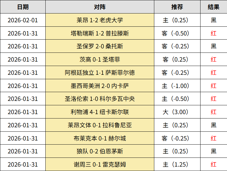 昨天会员12中8!英冠2场全红,谢周三0:1小负雷克瑟姆,输球赢盘;布莱克本0:1赫尔城,差点命中比分。英超2中1,狼队0:2完败伯恩茅斯,受让不中;利物浦4:1大胜纽卡,让胜+大球双收!西乙利安尼沙90分钟被拉科点球绝杀,受让被绝杀。阿甲3场全红,圣洛伦索1:0科尔多瓦中央,命中比分;阿根廷独立1:1萨斯菲尔德,再中比分;塔勒瑞斯1:2普拉滕斯,受让收米。墨西联2中1,墨西哥美洲2:0完胜内卡萨;莱昂1:2不敌老虎大学。巴圣锦标圣保罗2:0完胜桑托斯,受让不中。哥伦甲茨高0:1圣塔菲,三中比分!