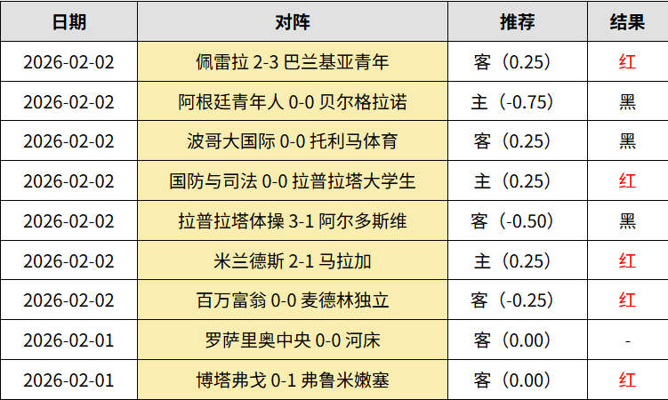 昨天会员6中3,近9中5走1!西乙米兰德斯2:1爆冷马拉加,受让足够稳。阿甲3中1,拉普拉塔体操3:1大胜阿尔多斯维,受让不中;防卫者0:0逼平拉普拉塔大学生;阿根廷青年人也0:0贝尔格拉诺,让步不中。哥伦甲2中1,波哥大国际0:0托利马体育,后者让步输一半;佩雷拉2:3巴兰基亚青年,让步收米!