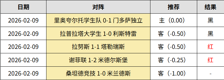 昨天会员5中2走1!西乙桑坦德竞技1:0轻取米兰德斯,受让走水。英冠谢菲联1:2米德尔斯堡,差点命中比分。阿甲3中1,拉努斯1:1塔勒瑞斯,命中比分!拉普拉塔大学生1:0轻取利斯特雷,受让不中;里奥夸尔托学生队0:1不敌门多萨独立。