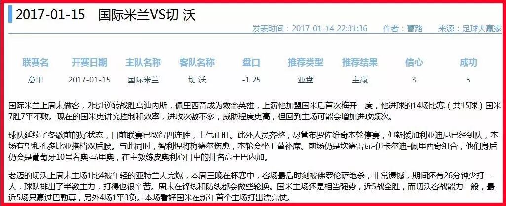 即便第34分钟,国米就被切沃偷了一球,但看比赛的朋友应该还是有很足的信心,可以说,这是国米本赛季表现最好的场次之一,完美兑现了我在推荐中的“承诺”,“本场看好国米在新年首个主场打出漂亮仗。”3比1大逆转,一分钱都不留给庄家!