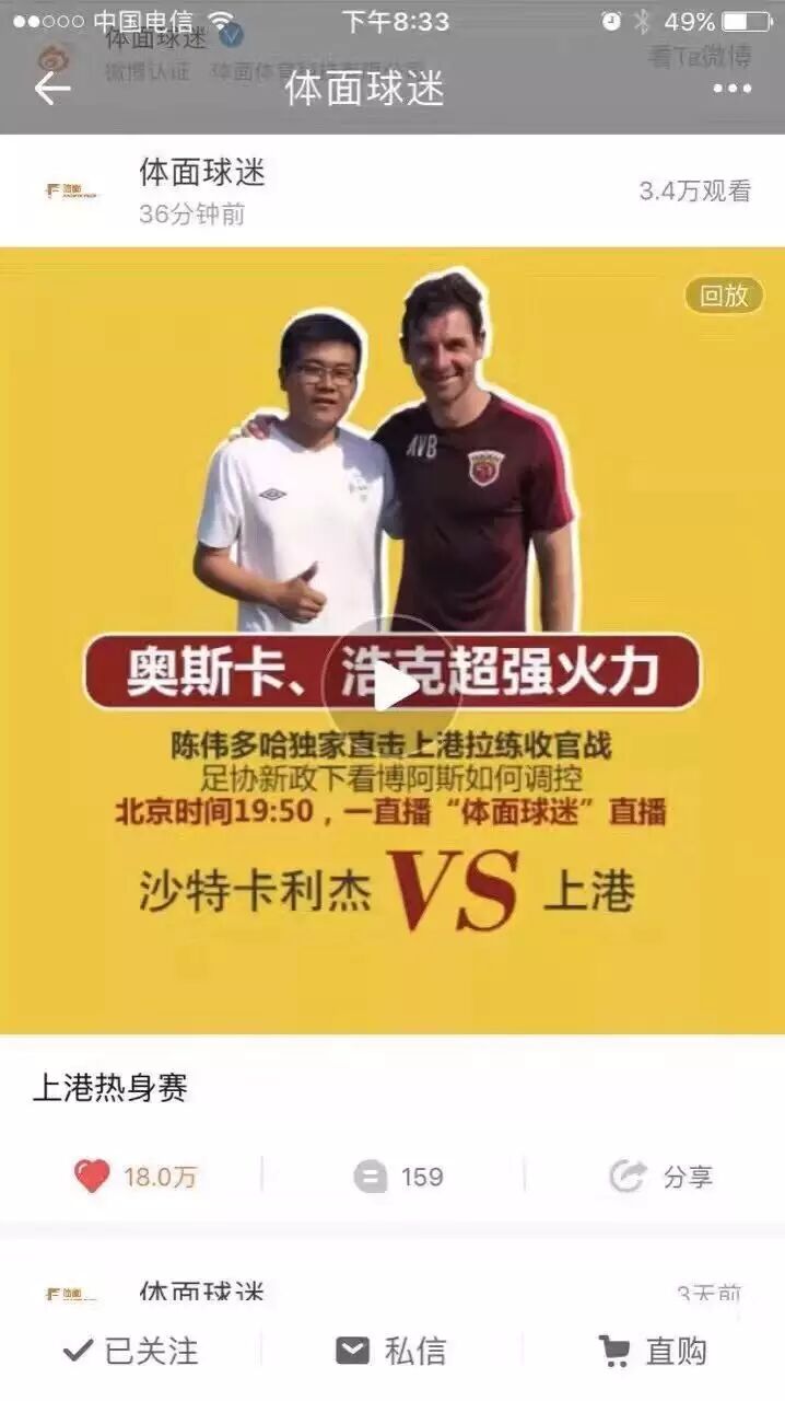 昨天,特别要请我们的上海上港记者从多哈直接发来了完全不对外开放的沙特卡利杰对上海上港的热身赛直播,这场直播仅仅15分钟就收获了18万以上的点赞。可见球迷对稀缺的一手资源的兴趣有多么浓厚。前几天,我还深入山东鲁能泰山在广州的训练营,直播鲁能队客家梅州的小型热身赛,山东鲁能泰山5比0取胜。这些直播尝试,都是为了以后更好的为球迷服务,让大家能更好看看到那些没有大型直播的比赛,也能够更直观了解到球队的细微动态。当然,花费了很多精力在这些平台前期的搭建上和资源的打通上,最近肯定也少了一些时间来整理比赛动态,如果草草推送,显然是极其不负责任的行为,所以索性停止了4天的推送。