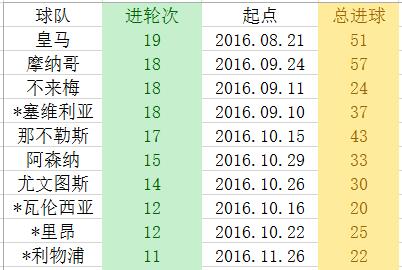 曹路︱还有哪些球队仍在不知疲倦地连续进球!