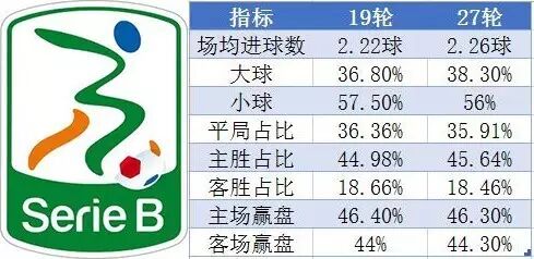 先说下意乙联赛的整体数据。我在去年平安夜曾经写过一篇文章分析了本赛季意乙的一些球路和盘路上的特点。当时的几个关键词是:进球少,平局多,主场优势不大。当时联赛进行了19轮,在又战了8轮后,这些特点是否发生了变化?让我们一起看一下。