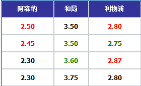 017阿森纳VS利物浦。本场比赛也算是焦点战役,今天这场比赛的热度必然不会低,阿森纳联赛近况321,客队近况330,阿森纳面对利物浦已经2个赛季没有赢过球了,本赛季的首次交锋利物浦主场4比0横扫阿森纳,所有的题材都在红军身上,毋庸置疑,本场比赛红军将会成为玩家的重点照顾对象。WL赔率2.45 3.5 2.88,94体系,和2.45 3.25 2.9相比顶高平,和初盘对比看来庄GOU上调主队赔付,平负都处在下滑的趋势,阿森纳本赛季主场就输掉一场比赛,能够到目前的盘赔足以说明利物浦整个赛季就输掉两场比赛的拉力更大,客队明显走热,所以说,本场比赛并不是盘开浅的了,而是威廉有意而为之,你喜欢买我就顺你们的意思咯。