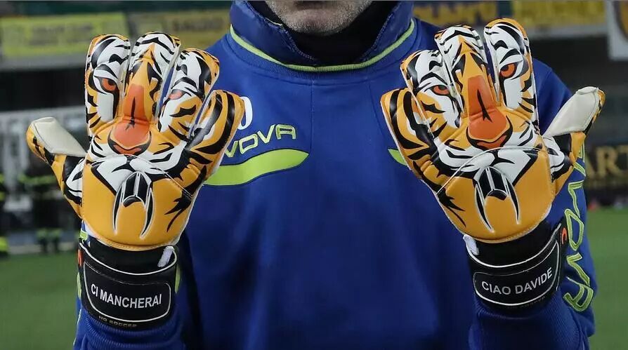 ▲切沃门将索伦蒂诺的手套上也有“别了 戴维德”自特殊字样。