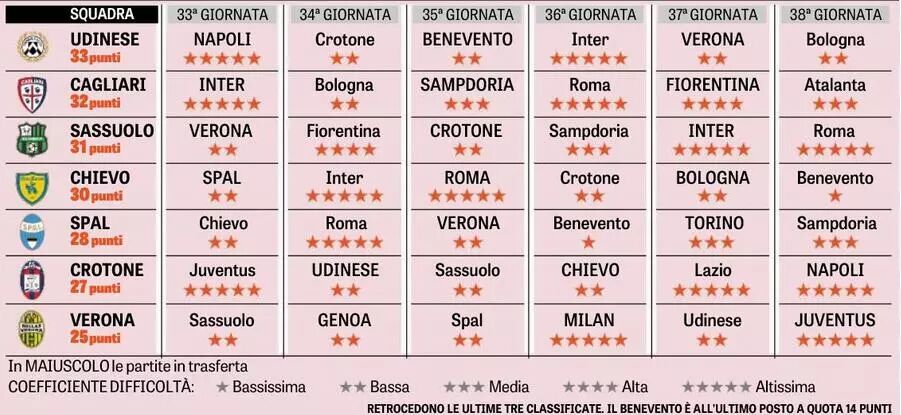 再看保级,上赛季此时,巴勒莫和佩斯卡拉两队已基本确定降级,倒数第3距离倒数第4,也有5分只差。而本赛季,除了贝内文托已掉队外,第13名乌迪内斯也只高出第19名维罗纳8分。7支球队都要为保级而战,而上赛季说白了,就是2队(恩波利和克罗托内)在争最后一个保级名额。
