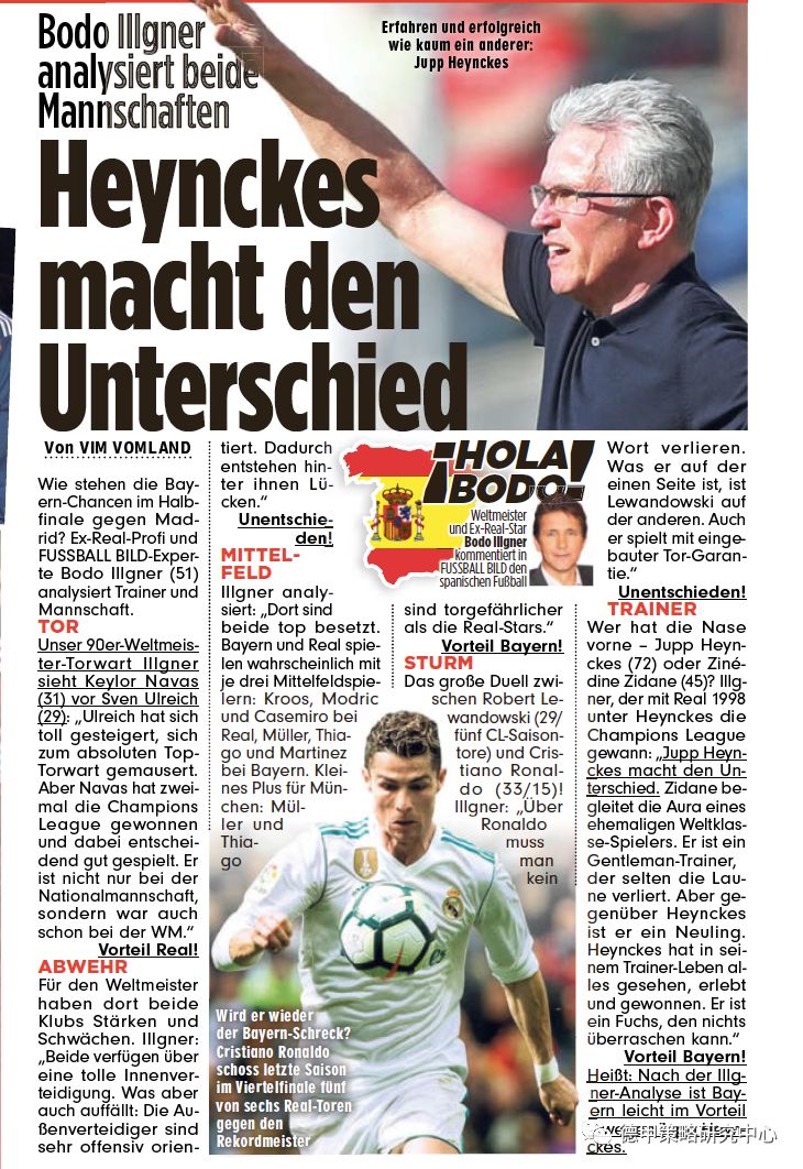 “海因克斯是决定性的。齐达内曾是世界级的领袖球员,他是一个绅士的教练,很少失去风度。但相对海因克斯,齐达内很年轻。海因克斯的教练生涯经历了可以经历的一切,他是一个狐狸,没有什么能让他惊讶的。”拜仁占优。