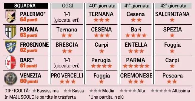 今晚,意乙第39轮全面铺开,这也是本赛季意乙最后一次周中比赛。在昨天先进行的一场焦点大战中,巴勒莫主场1比1战平巴里,西西里球队新帅上任并未能拿下开门红。