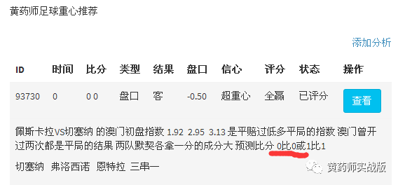 五大联赛已近尾声,其实每年这个时候的五小联赛比较好猜,升级保级的默契球特别多,昨天药师共推荐了三场意乙赛事,全部精准命中比分。如果不是默契球,凭实力,凭真打,是难都命中比分的。