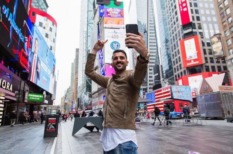 ▲比利亚在纽约城玩自拍。