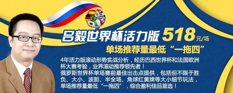 介绍:4年活力版滚动形势实战分析,经历巴西世界杯和法国欧洲杯大赛考验,业界滚动推荐领先者!俄罗斯世界杯单场赛前最佳出击点提供,包括但不限于胜负、大小、波胆、半全场、角球红黄牌等大小细节玩法,单场推荐量最低“一拖四”,综合盈利佳品首选!