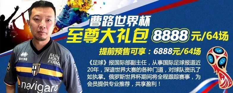 定价为8888元,而预售价更可低至6888元,若以单场168元计算,世界杯64场全包您将付出10752元的订购价,6888元的预售价相当于每场推荐将低至100元,堪称世界杯期间性价比最高的栏目!最后一天优惠,有兴趣的朋友可以关注一下。