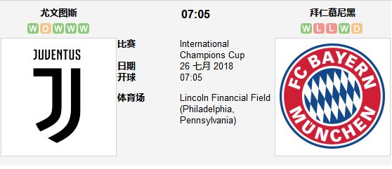 周三021竞彩,0700,尤文图斯VS拜仁,赛地:美国费城