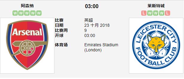 03: 00 英超 阿森纳 VS 莱切斯特城