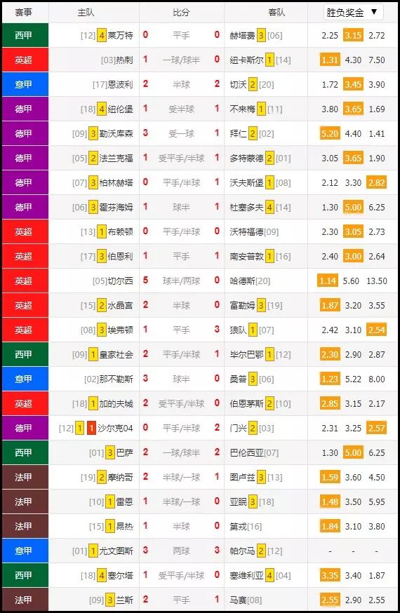 拜仁客场遭逆转,霍芬海姆主场被杜塞尔多夫逼平,都是大冷门。尤文图斯主场战平帕尔马,平赔高达7.50倍之多,不过竞彩保守的开盘风格,还是完美避开了这个大冷的赛果。