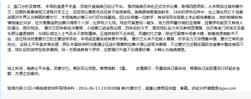 附:小韩昨夜今晨西班牙和爱尔兰比赛推荐: