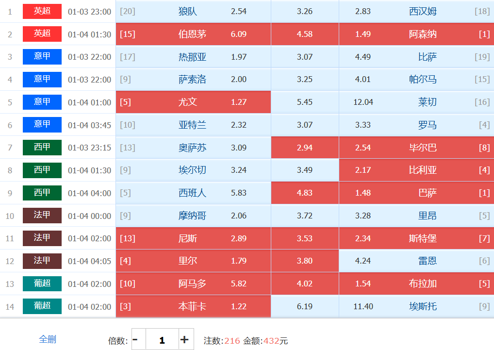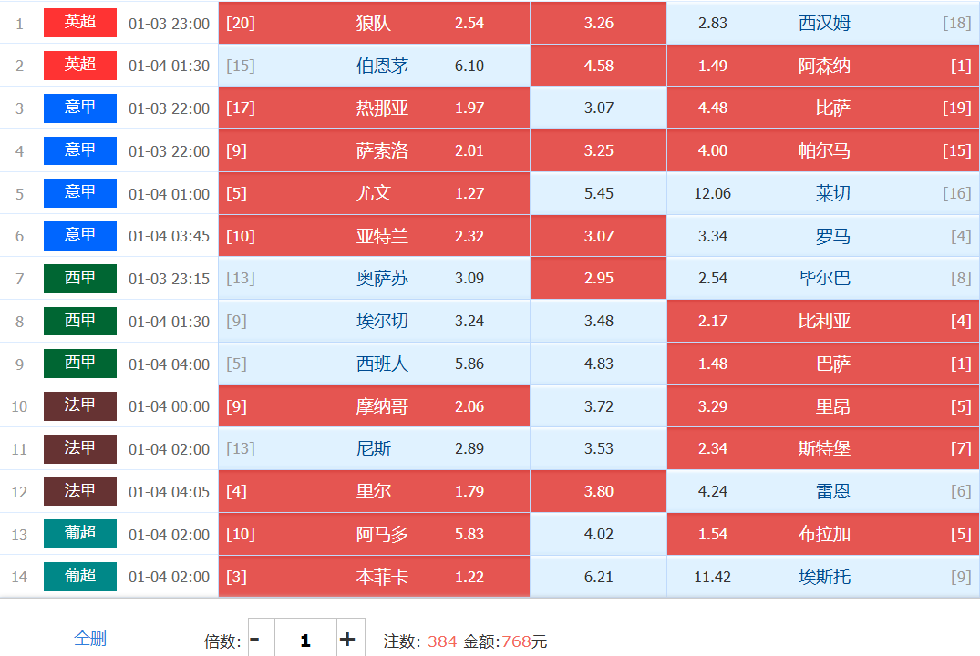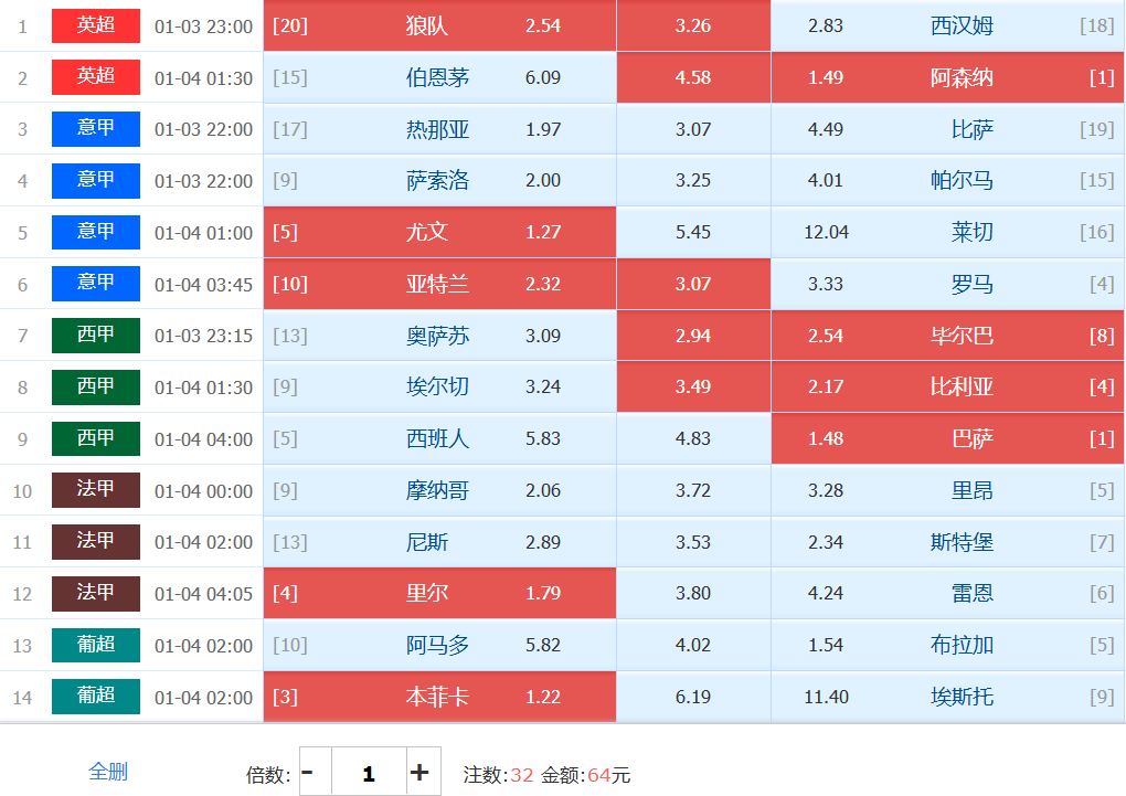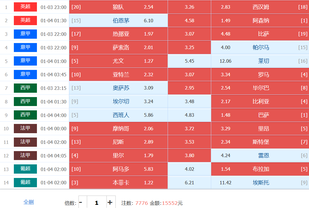 胜负彩梦想单: