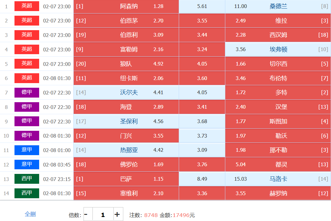 刀哥传足栏目意甲02-08 01:00热那亚VS那不勒斯超重心让球0.50客全赢