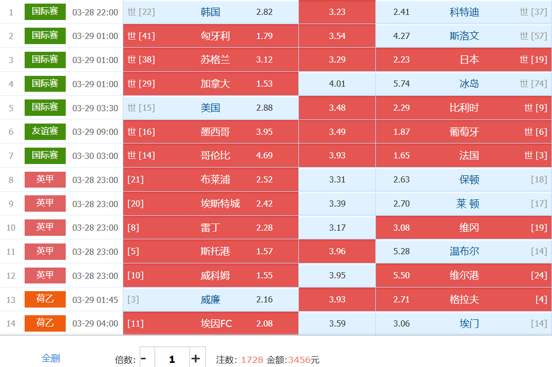任九1728实战单: