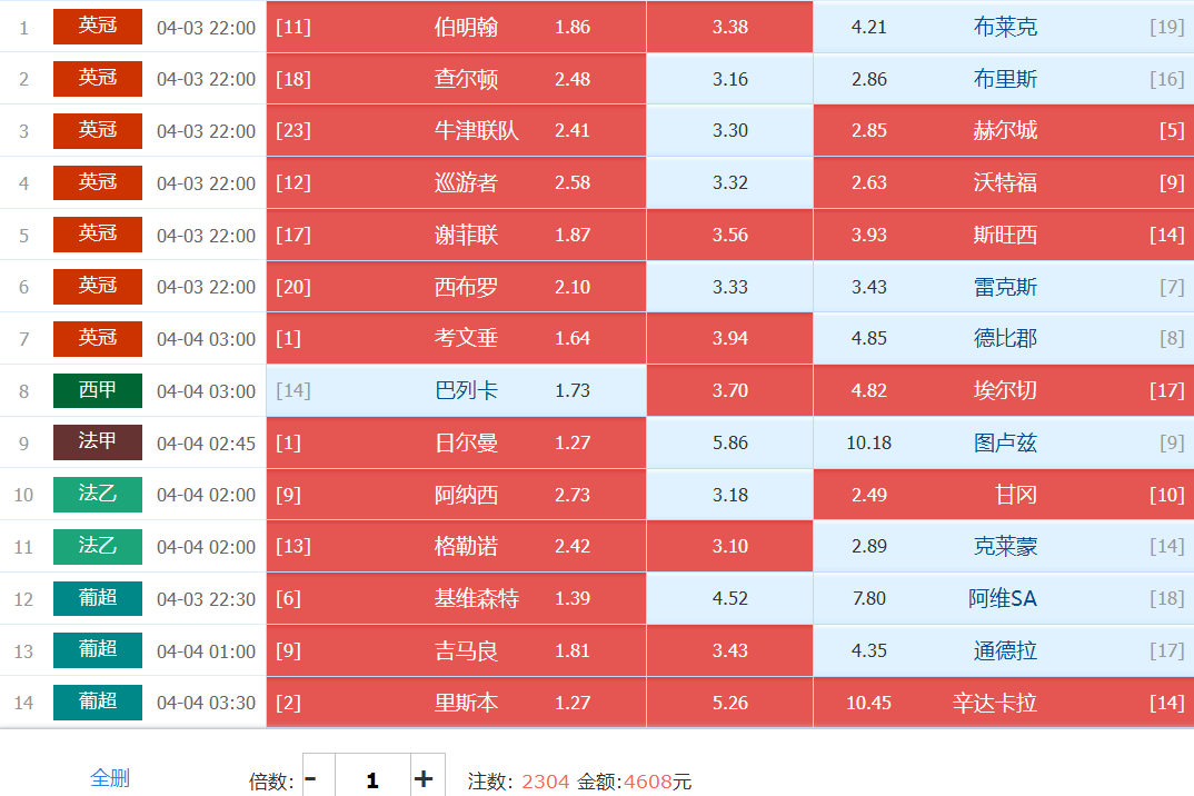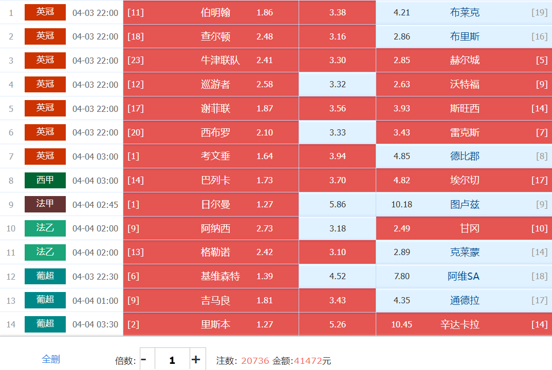 胜负彩梦想单: