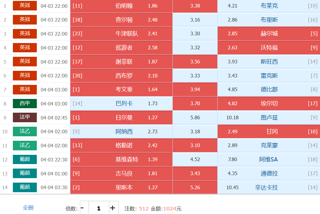 胜负彩实战单:基于大底单做减法——搏胆西布罗姆和查尔顿、牛津联走30、巴列卡诺直接扑冷10方向