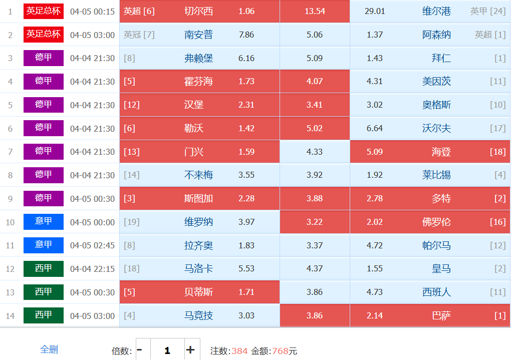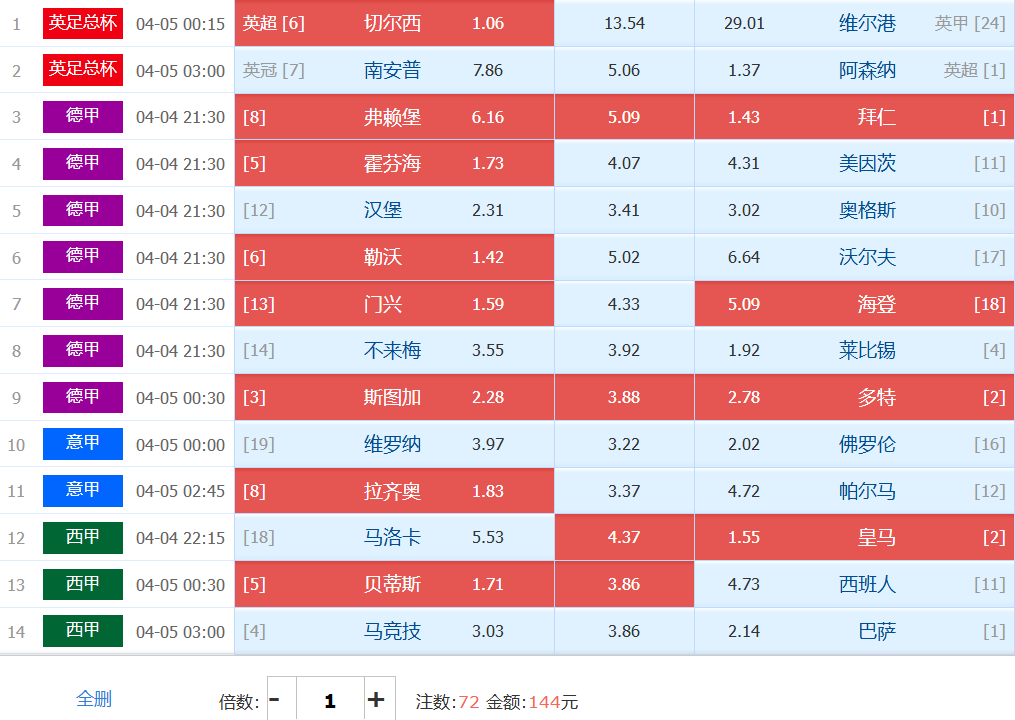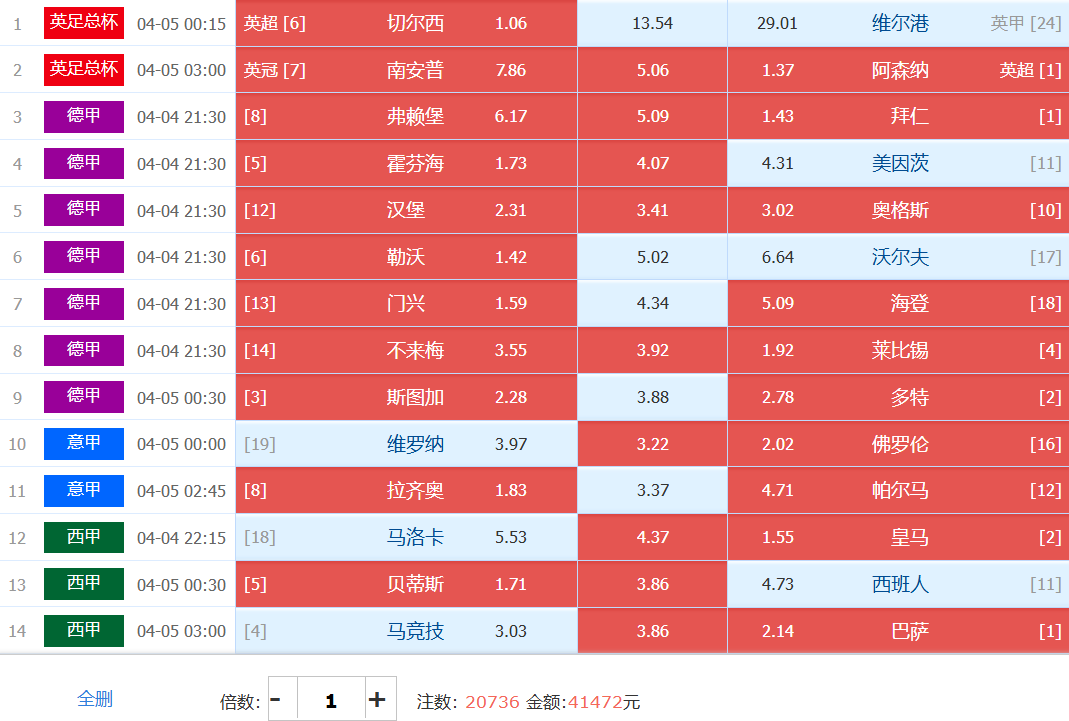 胜负彩实战单:基于大底单做减法——搏胆霍芬海姆+贝蒂斯+拉齐奥、汉堡走31