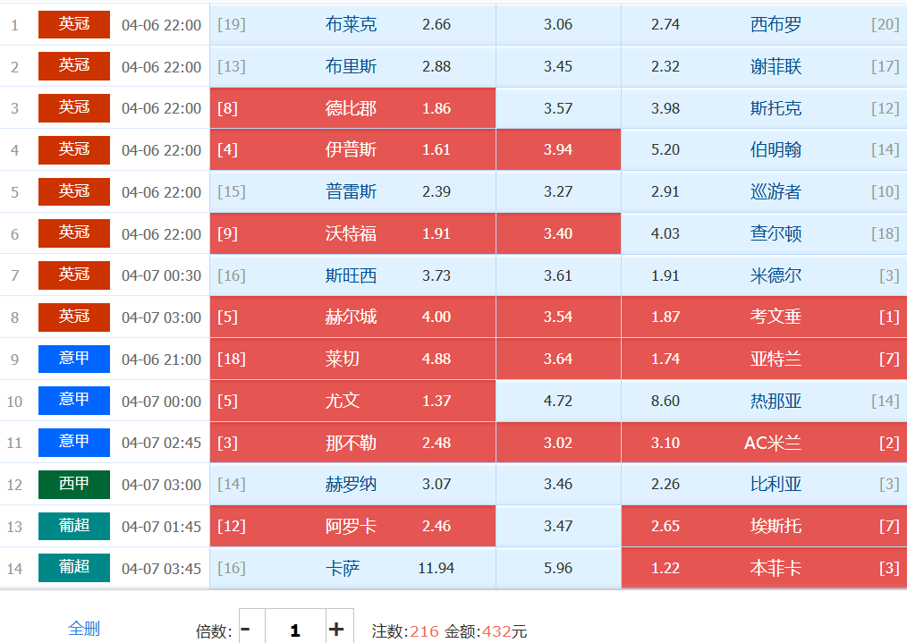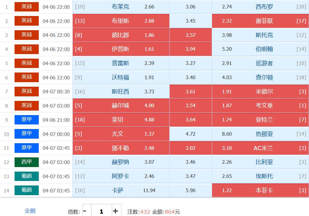 胜负彩实战单:基于大底单做减法——搏胆比利亚雷亚尔和德比郡,那不勒斯直接冷门走10、考文垂防大冷直接走30