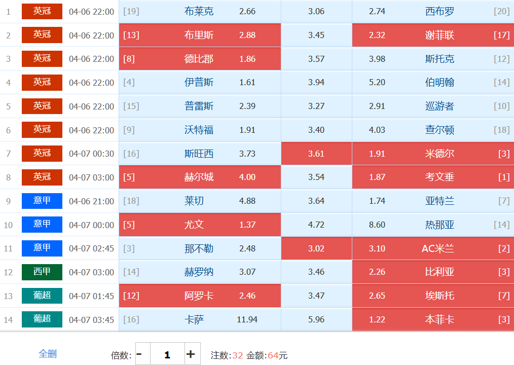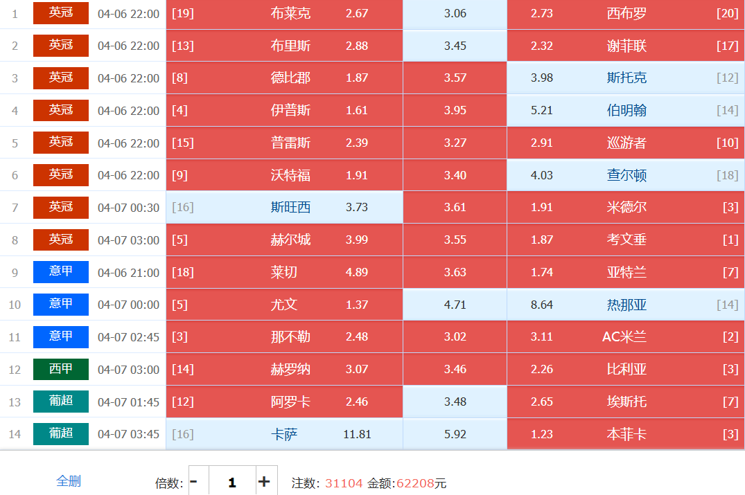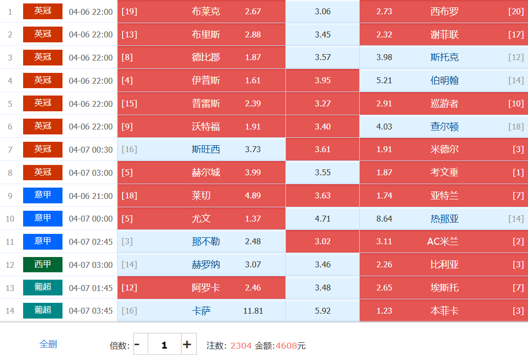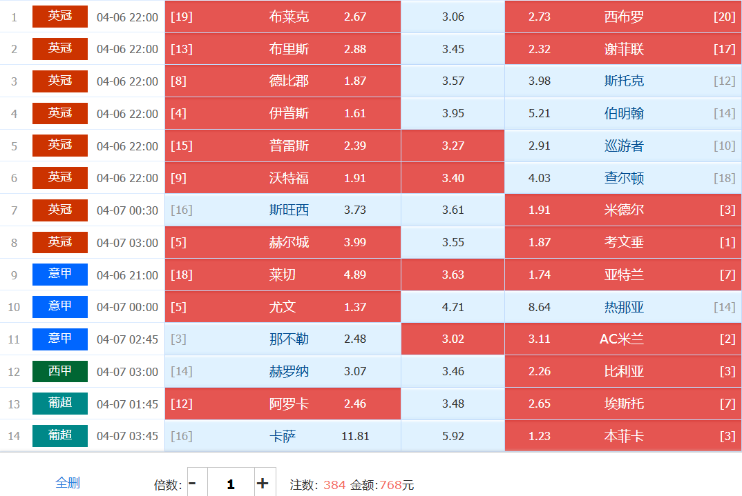 胜负彩梦想单: